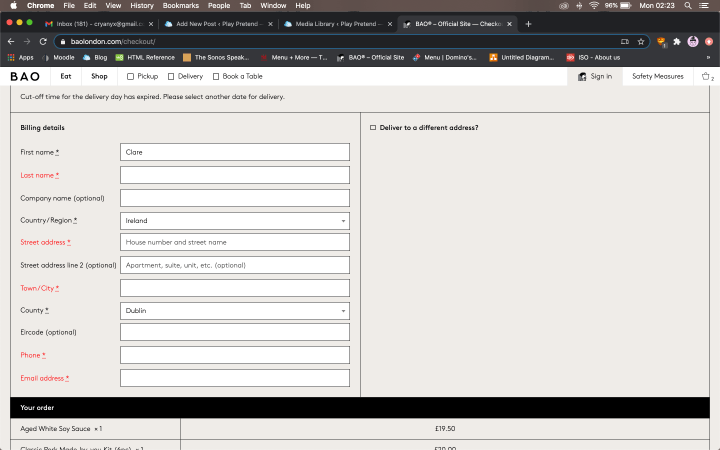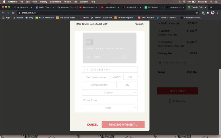 Cons: Menu on main page however is a Squarespace hosted png and can be improved by making it interactive, like in the (above mentioned) ordering page. I also noticed that the menu image has crop marks so this is indicative that it is inappropriately exported for web viewing- possibly originally a PDF for print, not optimised for web viewing. I had an issue with the payment system which I found unclear. Delivery site is separately hosted and does not easily connect back with main website and menu.
