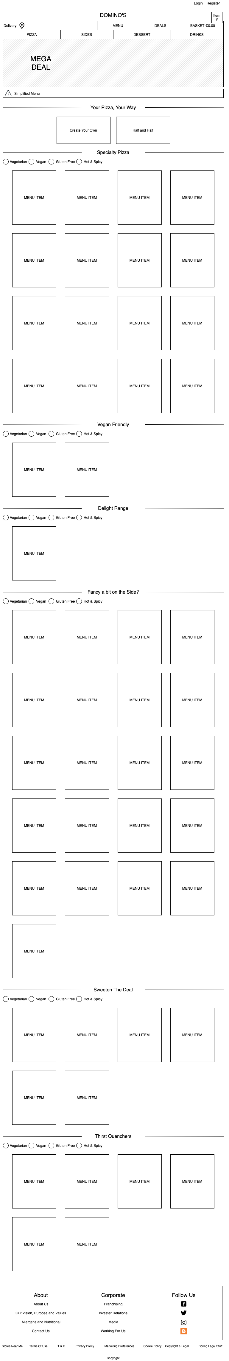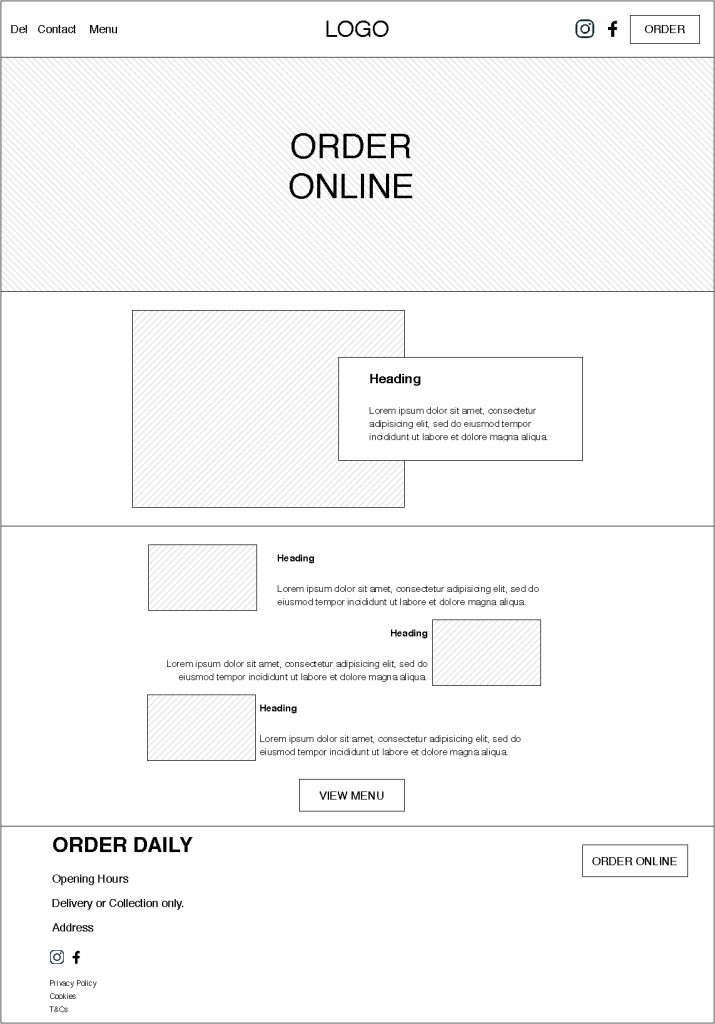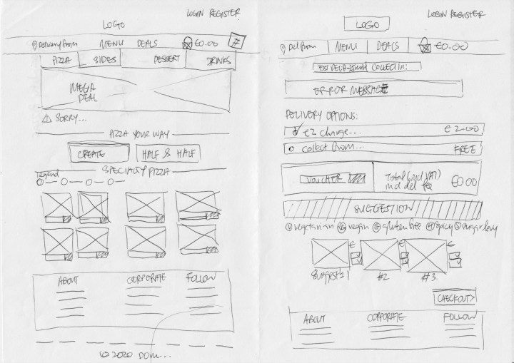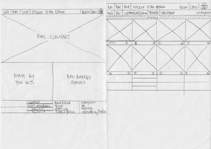 For each of the brand, I have done a quick sketch on paper first before construction on draw.io. As it is my first time drafting up wireframes, I found sketching it out useful to have a general structure in my mind before opening the program. In my experience working as a digital designer, a pencil sketch is my go-to first step for the design process. As evident in the wireframes below (they are presented in the same chronology as how I made them), the outcome gets better with each time I use the program, proving immediate improvements from every practice.